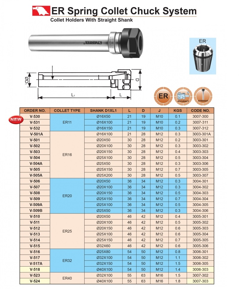- Bầu kẹp mũi phay chuôi thẳng mã V-530, V-531, V-532, V-501, V-502, V-503, V-504, V-504A, V-505, V-505A, V-506, V-507, V-508, V-509, V-509A, V-509B, V-510, V-511, V-512, V-513, V-514, V-515, V-516, V-517, V-517A, V-518, V-523, V-524 hãng Vertex sản xuất với chất lượng cao.