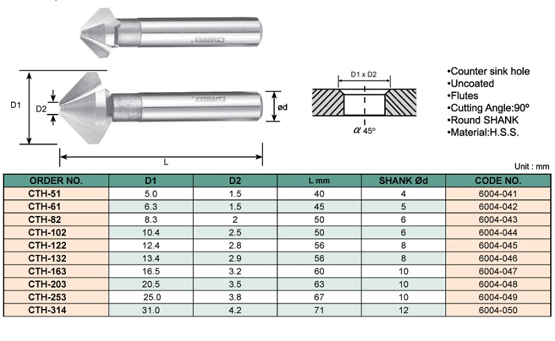 - Đường kính chuôi mũi vát cạnh: 4-12mm.